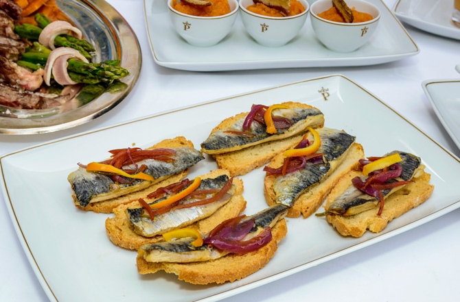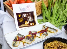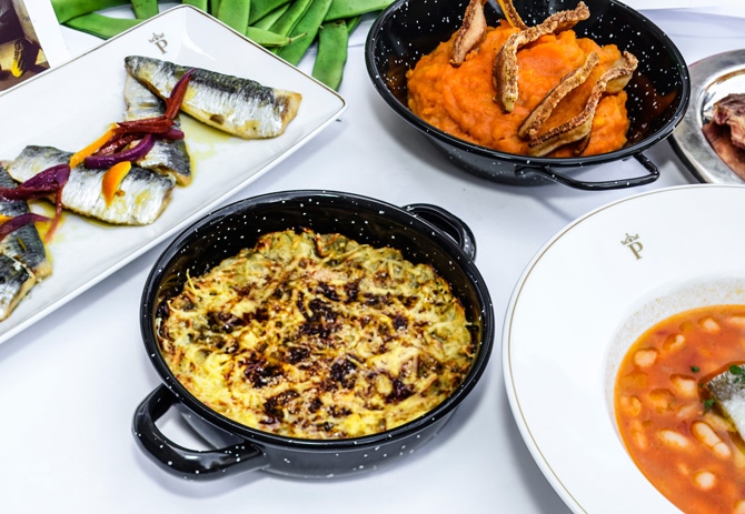 Mata ha elaborado una carta que comienza con patatas revolconas con torreznos, berenjenas en cazuela y lomos de sardina en escabeche; para seguir con un entrante de judías blancas de indias con bacalao estofadas con verduritas.