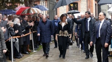 La lluvia se convirtió en granizo y éste acabó siendo nevada, que comenzó a caer nada más terminar la visita de la reina a la iglesia de San Juan, el “corazón” de Las Edades, con más de 60 piezas que la madre de Felipe VI pudo contemplar.