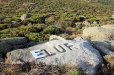 Para la nueva temporada, el promotor del centro, Carlos de Gredos, propone una obra en euskera en la parte oriental de la cima del cerro, a 1.617 metros de altitud. Sobre una roca y a modo de plataforma, compone la palabra ‘Elur’, que significa nieve.