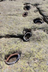 Otras de las nuevas obras la extensión de 30 hectáreas de Cerro Gallinero son de Azucena Pintor, como ‘Hilo con.duc.tor’, elaborada con ropa en desuso “convertida en liana serpentina o reptil que al mudar la piel se regenera entre las grietas”; ‘Constelación diurna’ y ‘Líneas ingrávidas’, “evidencia de una grafía natural, mediante pintura en el granito, producida por la diferencia de erosión, en unas líneas que al tener más proporción de cuarzo se deterioran más lentamente resaltando sobre la superficie”.