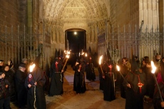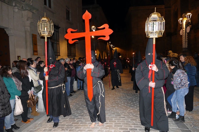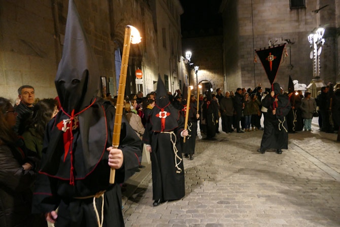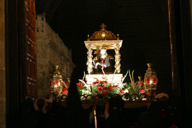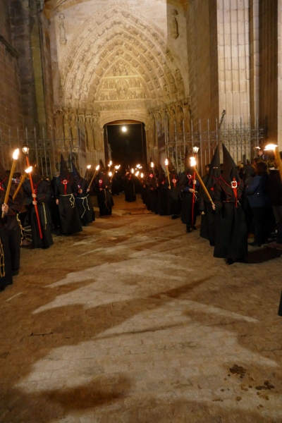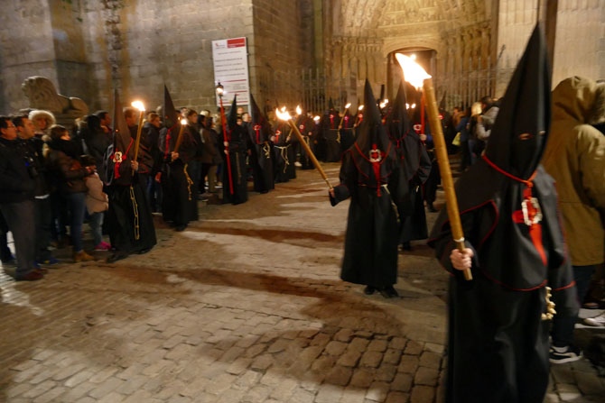 La exposición de Las Edades del Hombre que se celebra en el Convento de Mosén Rubí ha impedido que la procesión saliese de allí, como hace desde 1987. A las dos de la madrugada del Jueves Santo partió del templo catedralicio entre antorchas.