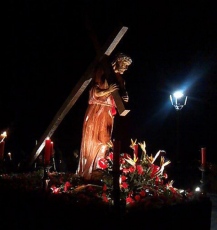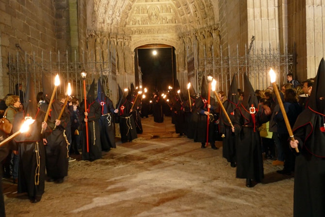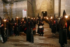 Silencio. Pies desnudos. Penitentes arrastrando cruces. El sonido de la cruz sobre los adoquines. El olor de los hachones ardiendo. Tambores y cornetas. Temperatura: cinco grados.