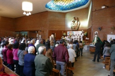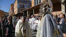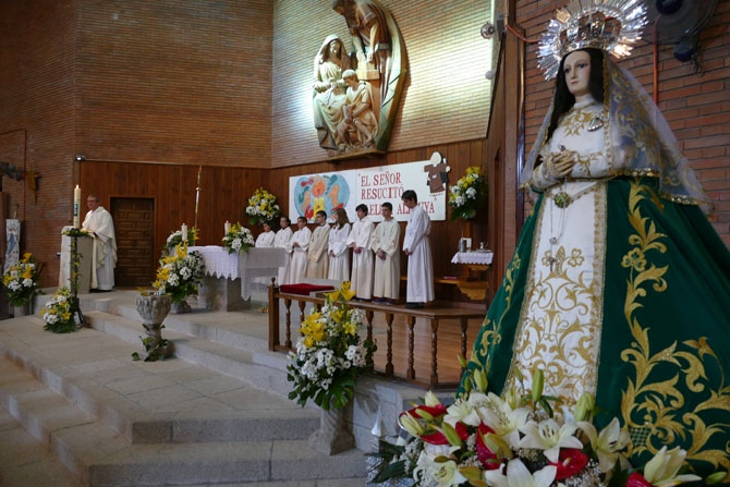Los cohetes sonaron desde primeras hora de la mañana del domingo en la zona norte de la ciudad. Minutos antes de las 11 horas y ante el Santísimo Cristo del Resucitado, sonó la música festiva de dulzaina, la misma que acompañó -tras la misa en al Sagrada Familia- a la procesión más larga, que subió al centro de la ciudad y regresó a su pequeña ermita, en el Pradillo.