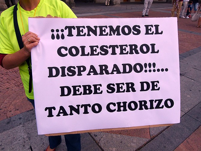 ‘No quiero acciones, quiero mi dinero’ o ‘Tenemos el colesterol por las nubes, debe ser de tanto chorizo’ eran algunos de los lemas que figuraban en sus pancartas, mientras siguen recogiendo firmas para apoyar sus intenciones, habiendo conseguido 1.200.