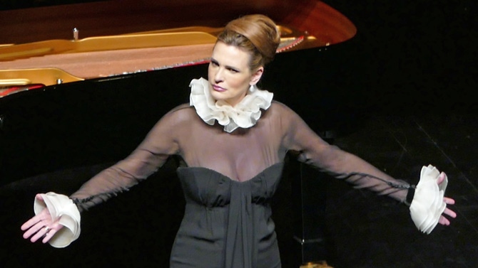 Era su primera vez en Ávila, y apostó porque no fuera la última cuando, como último bis, regaló un tema de la ópera 'Diálogo de carmelitas' para mostrar su deseo de cantarla aquí. Fue el final y resultó aclamada. Había cantado dos horas y cuarto.