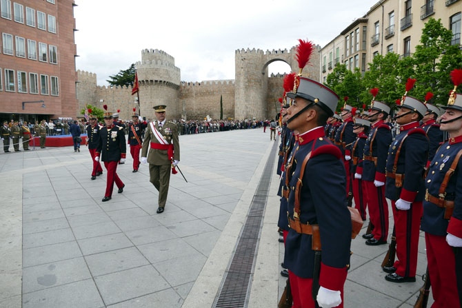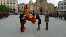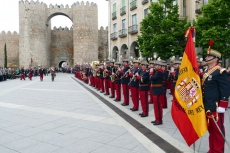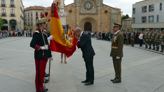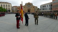 El Mercado Grande de la capital abulense ha acogido este homenaje a la bandera donde, tras los ciudadanos, han prestado juramento el alcalde de Ávila, Miguel Ángel García Nieto; la subdelegada del Gobierno, María Ángeles Ortega; la consejera de Cultura y Alicia de la Junta, Alicia García; o el delegado territorial de la Junta, Francisco José Sánchez, que han besado la bandera de este regimiento, que data del siglo XIII, siendo rey Fernando III el Santo.