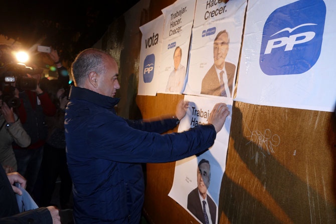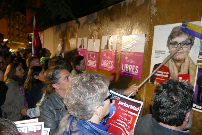 Decenas de militantes de todos las formaciones, poca luz, menos espacio por el desmontaje de la carta de la exposición de La Caixa, y periodistas y fotógrafos de un lado a otro para poder captar imágenes y opiniones de los momentos más festivos de la campaña electoral fueron imágenes de los primeros minutos de una campaña que mira el 24 de mayo.