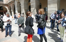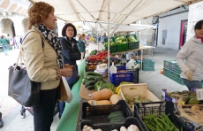 A la que se vio comprar en un puesto fue a Manoli Prieto, la candidata de Ahora Decide, mientras que los de Podemos habían colocado una mesa lejos de allí, en un rincón de la Catedral.