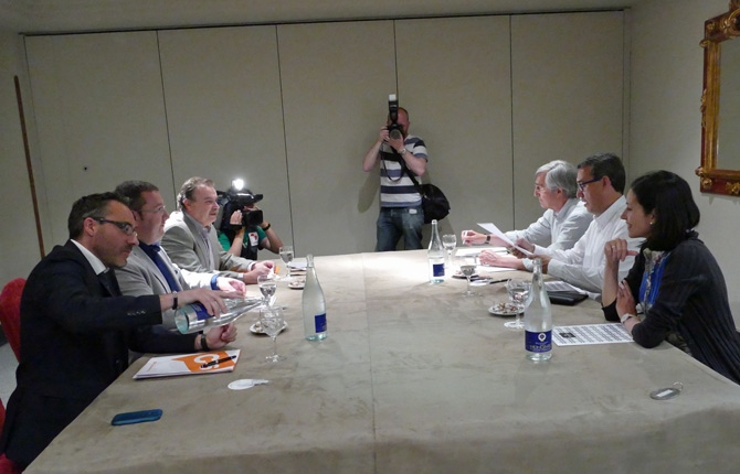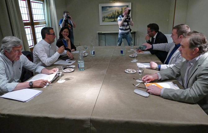 El encuentro se ha celebrado desde las 20,30 horas en el Parador, con los tres representantes de cada formación a un lado de la mesa.