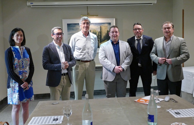 El presidente provincial de los populares, Antolín Sanz; el candidato a la alcaldía, José Luis Rivas; y la teniente de alcalde en funciones y concejal electa, Patricia Rodríguez, por un lado; y, por otro, los tres primeros integrantes de la lista de Ciudadanos y ediles electos: Marco Antonio Serrano, José Carlos Álvarez y Pedro Cabrero.