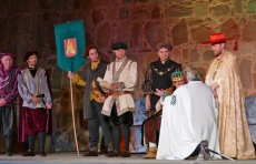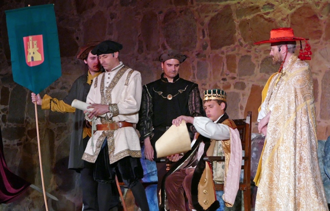 También los niños adquirieron mayor protagonismo en las escenas del pueblo abulense, esas en las que aclamaron o abuchearon a sus próceres, en una representación patrocinada por el Instituto Castellano y Leonés de la Lengua, y en la que se cobró un euro por espectador destinado al Banco de Alimentos.