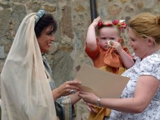 El grupo denominado ‘Estipendi draconem’ han sido los ganadores de la segunda edición del concurso de atavíos, dotado con 500 euros en billetes medievales a canjear en los puestos del mercado.