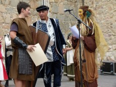 Entre los adultos el primer premio (150 euros) ha sido para David Oviedo, ataviado de sargento templario, mientras que el segundo (100 euros) fue Laura González, vestida de partera del siglo XIII; y el tercero (100 euros) se lo llevó Francisco Ortiz (50 euros), que iba de templario. El ganador entre los infantiles (50 euros) lo consiguió Daniel de la Calle, vestido de mercenario; seguido de Marina Fernández, ataviada de pequeña infanta (30 euros); y Leo Pérez, que iba de bufón (20 euros). Los ganadores fueron elegidos entre las 60 personas que el viernes por la tarde participaron en el concurso.