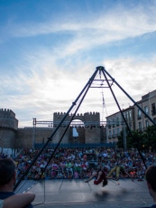 La tercera y penúltima jornada del Festival Internacional de Nuevos Lenguajes Escénicos Artescena también acogió el espectáculo familiar de Miguelillo y los pasacalles Freaks de la compañía The Freak Cabaret Circus, los promotores de la Escuela de Circo de Valladolid que ofrece talleres circenses para los más jóvenes.