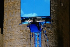 La actuación de Moreno con 'Floten tecles' -desplazada del viernes al sábado por motivos técnicos- es un pianista colgado en posición vertical donde la tapa del piano a modo de nube frente a la muralla se convierte en pantalla de cine o caleidoscopio.