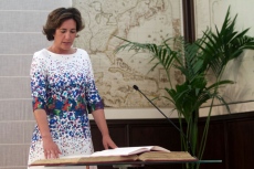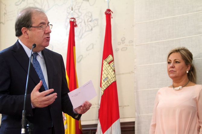 Seis consejeros han jurado el cargo y dos de ellos lo han prometido -los consejeros de Sanidad, Antonio María Sáez, y Educación, Fernando Rey-, ante los consejeros que abandonan el Gobierno: Tomás Villanueva, Juan José Mateos, Antonio Silván y Silvia Clemente.