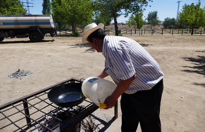 600 kilos de patatas se han empleado para preparar el tradicional plato, con agua, aceite, sal, ajo, cebolla, pimentón y pimiento, además de leña encina.