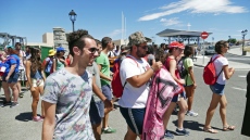 La otra imagen es la de largas comitivas de jóvenes, acompañados de religiosos, en muchos casos con banderas y enseñas, que han surcado distintos puntos de la ciudad, de acuerdo a los lugares donde pernoctan, si bien el entorno del lienzo norte de la muralla es paso obligado de todos, al acudir a comer -la organización reconoció que se vio desbordaba y produjo retrasos en el reparto de la comida-, cenar y a los conciertos por la noche.