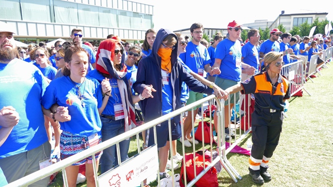 La ceremonia religiosa se prolongó durante hora y media y concluyó sobre las 12 horas, tras lo que se expresaron -mientras la orquesta hacía algunos bises- agradecimientos a Ávila, a los cerca de 400 voluntarios -butanitos los llaman por su camiseta naranja- y a los propios peregrinos, llegados de países de Europa, Estados Unidos, Australia, Brasil y Argentina, según dijo el director del encuentro, Raúl Tinajero. En ese momento se alzaron banderas de los numerosos lugares de procedencia, desde las comunidades españolas a la australiana, mientras los participantes se despedían.