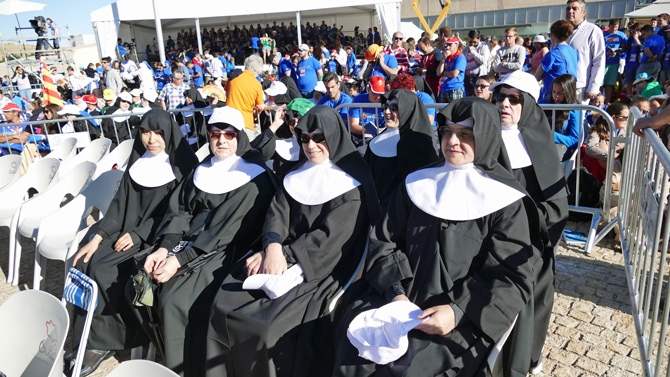 La ceremonia fue presidida por las imágenes del Cristo de los Ajusticiados y de Santa Teresa, que la noche anterior ya acompañaron la vigilia nocturna de los jóvenes. Éstos acudieron bien pronto -tenían que recoger la comida preparada ya para el viaje de regreso- y asistieron a la eucaristía ante un intenso calor, en una eucaristía salpicada por las interpretaciones del coro y la orquesta del centenario.