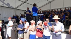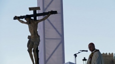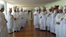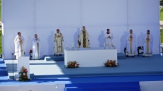 Oficiaron la ceremonia 35 obispos y 52 sacerdotes, a los que hay que sumar otros 200 que -situados ante el escenario- contribuyeron a distribuir la multitudinaria comunión entre los miles de asistentes.