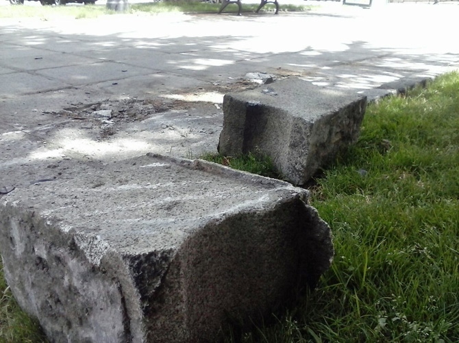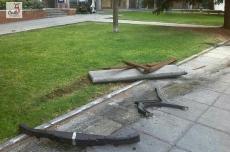 En su trayectoria, se llevó por delante un banco de piedra, que quedó desmontado en sus piezas, y arrasó con uno de madera, que resultó despedazado.