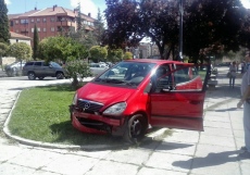 Lo que llama poderosamente la atención es que tras entrar en la zona peatonal de la plaza, el vehículo discurrió en una trayectoria de al menos 30 metros de distancia por la zona de piedra y quedo parado sobre el césped.