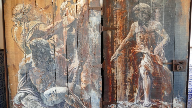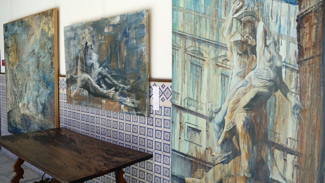 ‘Guluaga’ (Madrid, 1961), por su parte, llega a Ávila con un trabajo que ha realizado en la última década con el título ‘Un legado en el tiempo’ e integrado por esculturas clásicas que lleva a la pintura en soportes como lonas de camión o tablas de ripia y que reciben nombres como ‘La victoria de Samotracia en el tiempo (fragmento)’, ‘El estallido de Laocoonte’ o ‘El cautivo moribundo’.