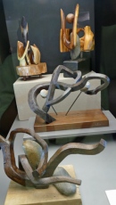 La sede de la Diputación de Ávila acoge esta doble exposición que, por parte del escultor Raúl Apausa, natural de Navarredonda de Gredos, lleva por título ‘Del campo a la ciudad’ y está integrada por 39 piezas que muestran un camino que va desde lo natural, donde predomina el empleo de la madera, hasta lo más elaborado, ejecutado en vidrio, en lo que ha definido como “un paralelismo de la evolución del hombre, desde lo sencillo hasta lo complejo”.