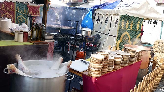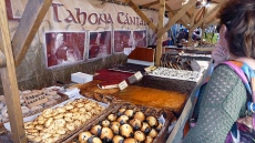Más de 80.000 metros cuadrados acogen más de 300 puestos, donde llaman la atención como novedad varios dedicados a las tan de moda cervezas artesanas, o la profusión de regaliz de palo en otros, si bien tanta variedad ofrece que posibilidades para todos los gustos, aunque los que reclaman al viandante con los de los artesanos que muestran su trabajo en vivo: el soplador de vidrio y el herrero en la plaza de la Catedral, o el tallador de madera en el zoco árabe de la plaza de la Fruta, entre otros, porque también el que elabora buñuelos o "salchichas XXL" -como se anuncian- hacen su trabajo en directo, como quien ofrece 'Tú nombre en un granito de arroz'.