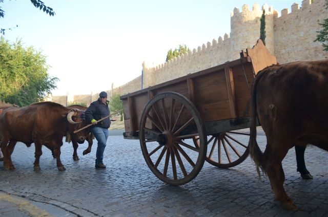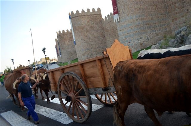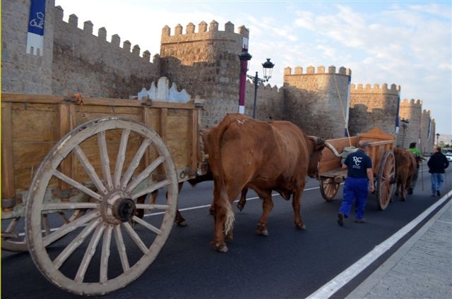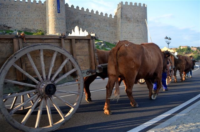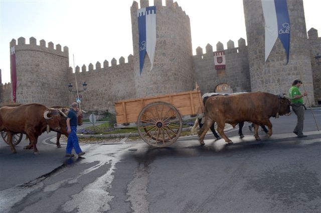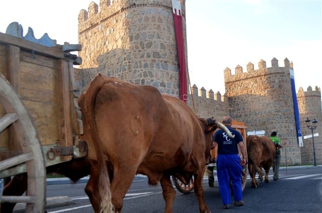 Al más puro estilo trashumante, cuatro bueyes llegados de Navarredonda de Gredos y Rivilla de Barajas protagonizan la marcha. Llegaron el sábado a la capital abulense y durmieron en el antiguo mercado de ganados, junto a sus dueños, como manda la tradición ganadera.