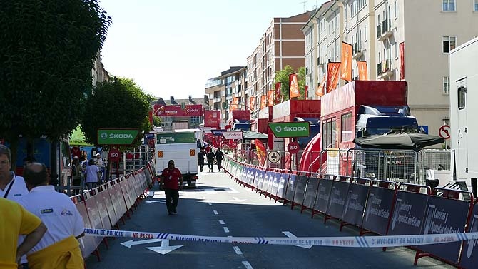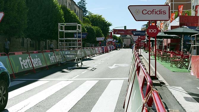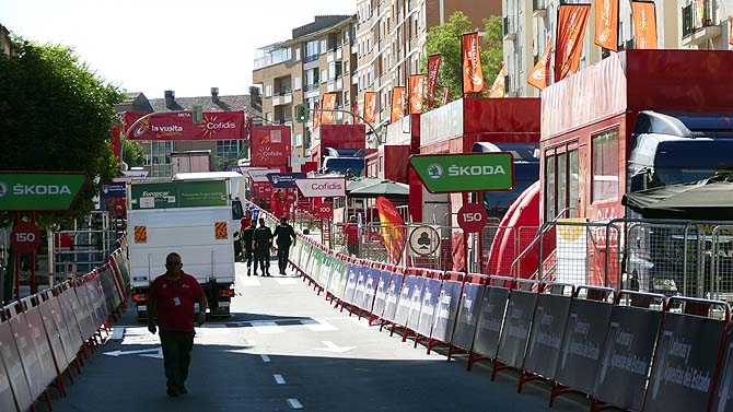 Desde la tarde del jueves se ha notado el ambiente de preparativos, con la instalación de todos los dispositivos que conlleva la carrera: en los últimos kilómetros de la etapa con la colocación de vallas en el recorrido, en la línea de meta con el cerramiento del entorno y en el aparcamiento del Lienzo Norte con el espectáculo fin de etapa.