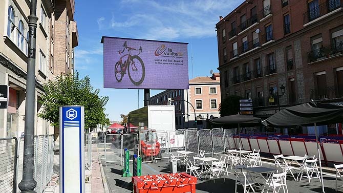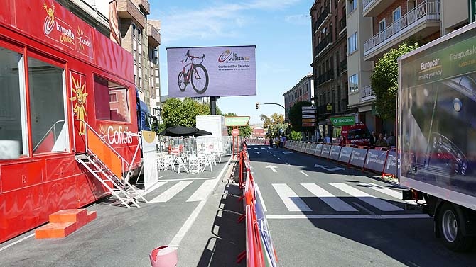 En línea de meta destaca un camión con una gran pantalla. La décimonovena etapa entrará por la carretera de Cardeñosa y de Salamanca, para subir por la Ronda Vieja hasta la calle Hornos Caleros, donde se encuentra una meta volante, por la que pasarán a partir de las 15 horas.