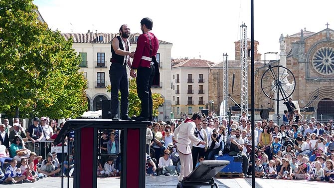 Los franceses de Acrobarouf pusieron en escena 'Scratch' al mediodía en el Mercado Grande, con humor y técnicas circenses de la mano; mientras que en el Palacio de los Superunda la compañía argentina dio vida a la historia de 'Giuseppe y Peppino'; y en el Palacio de Bracamonte el cartero al que da vida Jean Philippe Kikolás, con 'Sin remite', contó historias y terminó dentro de un globo gigante.