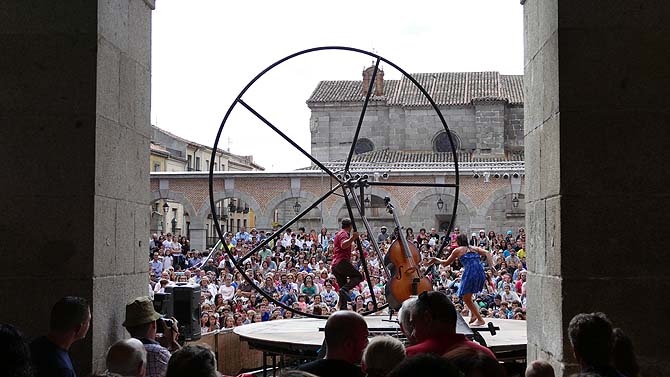 El montaje elaborado en menos de una semana en homenaje al centenario de Santa Teresa 'Camino de perfección', de los alumnos del encuentro de escuelas europeas de circo, se puso en escena a última hora de la noche en el Episcopio, como final de una jornada con numerosas puestas en escena.