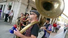 Por las calles tocaron Gadjistán, con sonidos eclécticos entre balcánicos, cumbia, ska, reggae, swing y tango, y los clowns de La Piccola Orquesta.