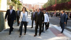 En su visita, ha estado acompañada por el presidente de la Junta de Castilla y León, Juan Vicente Herrera; el ministro de Educación, Íñigo Méndez de Vigo, y el alcalde de Palencia, Alfonso Polanco.