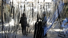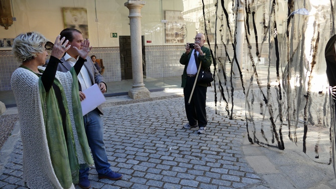 La conmemoración del V Centenario del nacimiento de Santa Teresa aparece, por otra parte, en ‘Santa Teresa dialoga con la naturaleza’, una instalación en la que Linda de Sousa (Lisboa, 1949) ha simulado, con paneles manchados de tinta realizados en acetato, un bosque de árboles sobrevolado por palomas a través del que se puede caminar y en cuyos cuatro puntos cardinales aparece la figura de Santa Teresa entre pucheros, levitando o escribiendo.