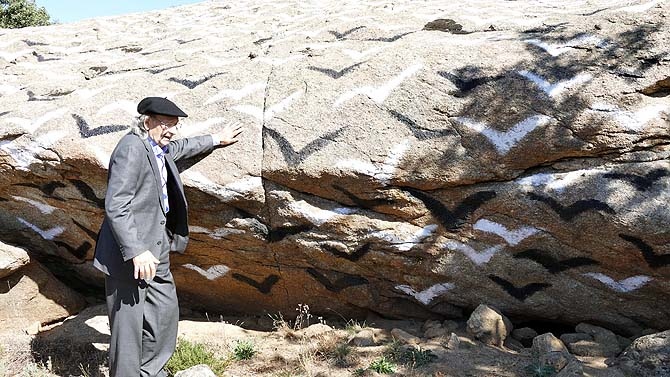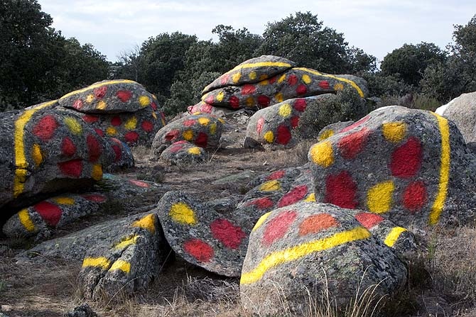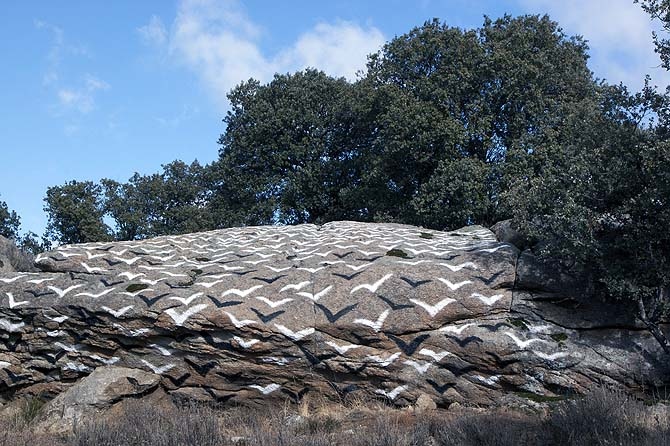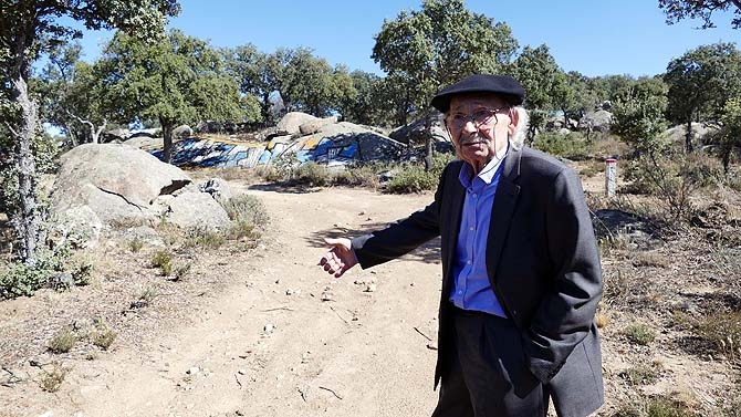 "Las rocas te dan mayor libertad que el papel", explica el artista vasco ante una de las 115 obras que pintó en cuatro temporadas que pasó entre encinas entre 2005 y 2009, alejado de amenazas y presiones del País Vasco junto a su esposa Mari Luz.
