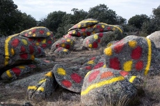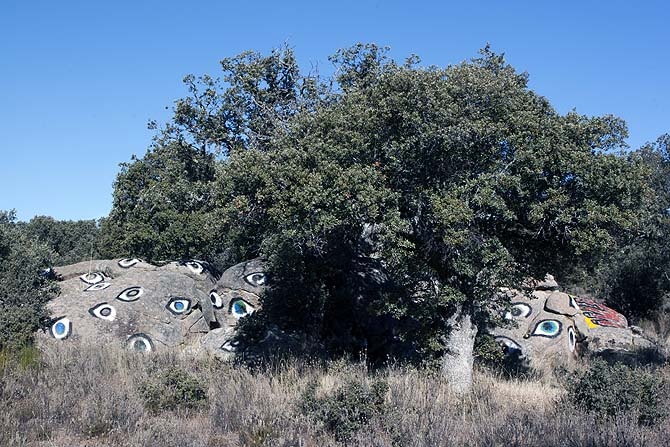 Fue acogido por el propietario de la dehesa, Alfredo Melgar, y se enamoró de un paisaje, su historia y de su cultura, como ha contado entre los senderos que permiten recorrer su colorida obra, como el conjunto compuesto por el sol y la luna, la muralla, los pájaros, la piedra de los poetas o los ojos.