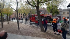 El simulacro ha partido de un incendio en el almacén del archivo, a partir de lo que su directora, Carmen López, ha activado el plan de emergencias llamando a los bomberos, para después desalojar el edificio, que en este caso tenía al centenar de participantes en las jornadas y a los ocho trabajadores del centro archivístico. Ya en la calle, éstos han echado en falta a dos compañeros, que los bomberos han extraído en camilla supuestamente heridos.