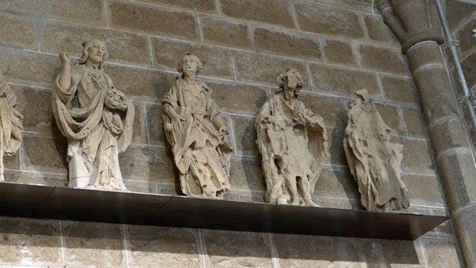 Las siete esculturas que adornaban la fachada principal de la Catedral de Ávila han regresado a las alturas, pero en el interior del templo, donde han quedado expuestas para que el público pueda contemplarlas.