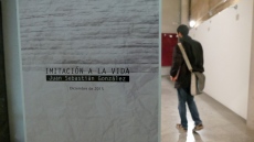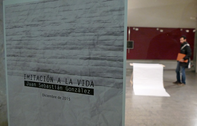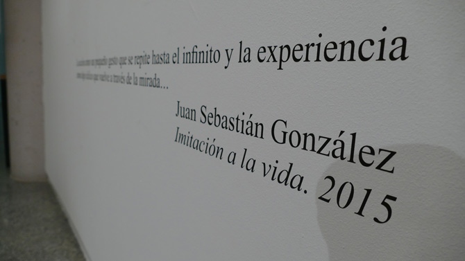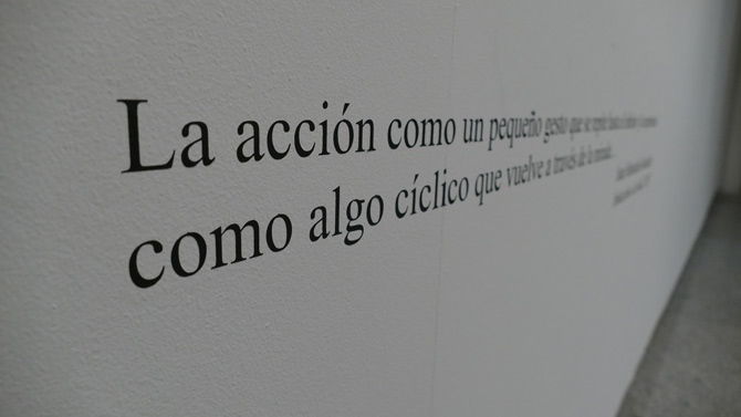 La pieza se conformó en el propio espacio el día de la apertura de la muestra, y se completa con una instantánea obtenida durante su intervención y la proyección en vídeo del proceso de creación.
