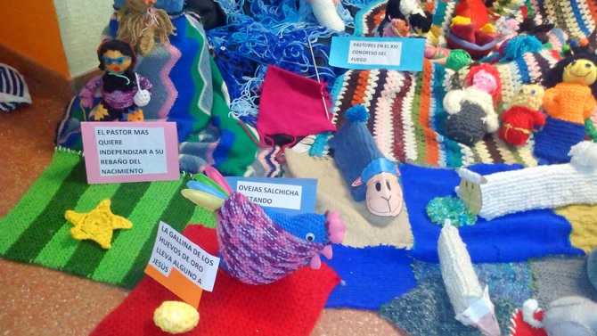 "La ilusión es la protagonista de este nacimiento -dice la explicación en Mosén Rubí-. Hemos tricotado millones de puntos del derecho y del revés que simbolizan los millones de personas del mundo, quienes cada uno en su lugar, teje, hacen ganchillo y cosen sus vidas con la intención de mejorar un poco los puntos y las vueltas de las vidas de los demás".