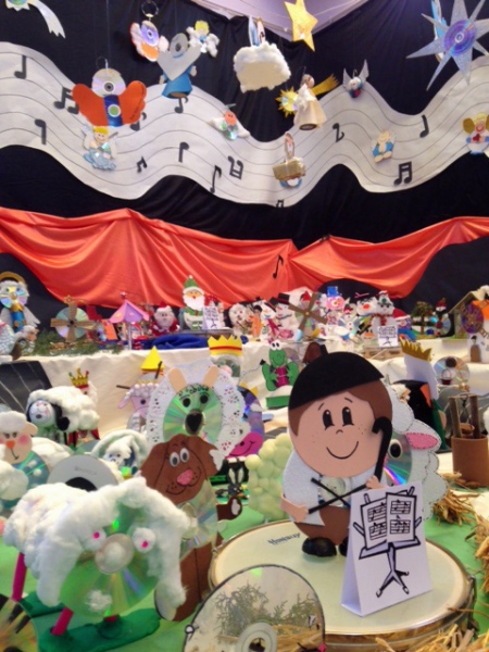 En el Colegio Santo Tomás dedican este año todas las actividades a la música como eje vertebrador, por eso han utilizado CDs para crear figuras y elementos del belén. Y han implicado a las familias para que desplieguen su creatividad con CDs reciclados que han convertido en pastores, ángeles, estrellas, ovejas, molinos, pozos y un sinfín de personajes diferentes.