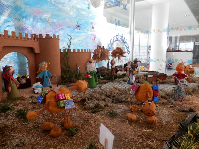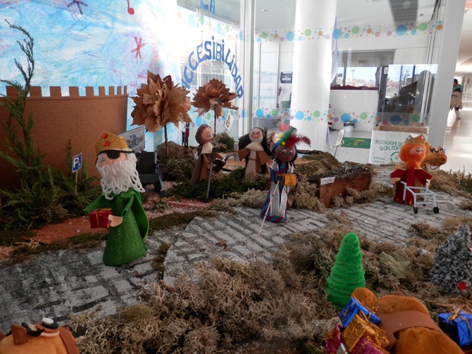 El Centro de Educación Especial Príncipe Don Juan ha colocado un "belén de la accesibilidad" donde, con el fondo de la muralla, puede apreciarse a un rey mago y la virgen con andador, un camello que le acredita como vehículo para una persona con discapacidad y algunasn indicaciones en braille, entre otros elementos de integración.