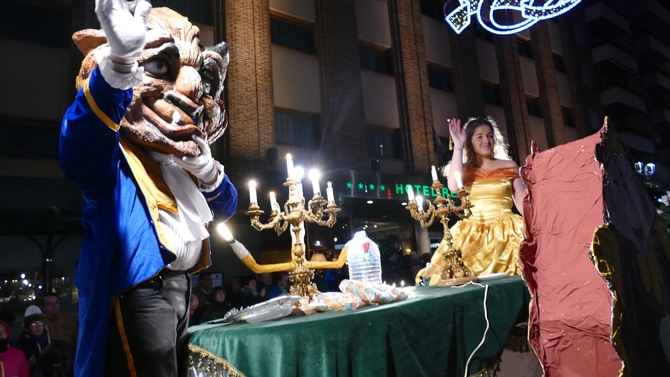 Las otras cuatro carrozas participantes fueron 'El árbol de Navidad', de la Asociación Cultural Barrio del Resucitado'; 'La llave mágica de los Reyes Magos', de Feafes Ávila Faema; 'Los payasos del circo', de ASE Abulenses sin Empleo; y 'La bella y la bestia', de la Asociación Juvenil Jarana Vaquera. La bella de esta carroza merece una mención especial porque hizo también de valiente, y es que desfiló en manga corta y con los hombros al aire.