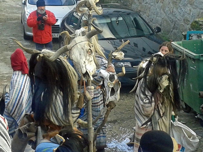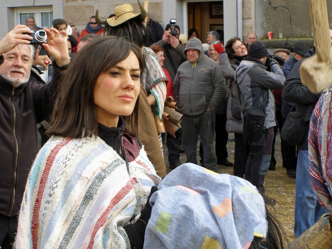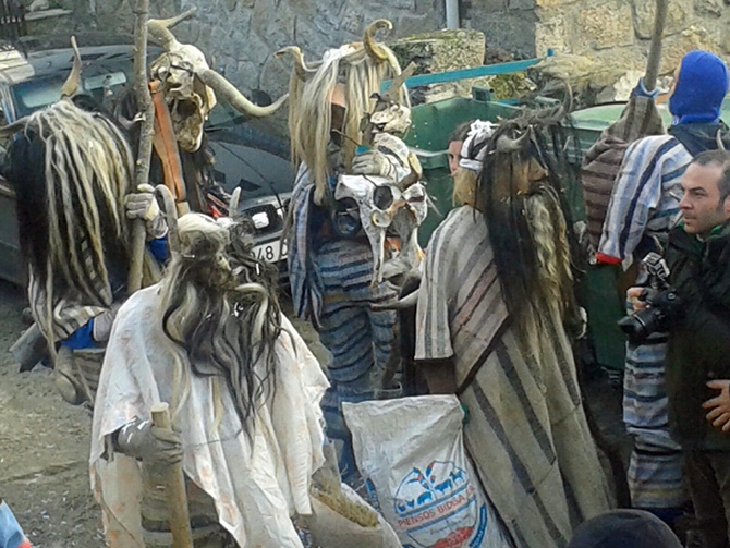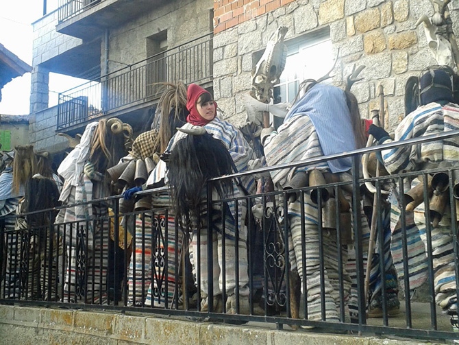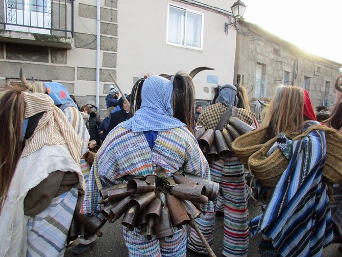 Arrojando paja sobre las cabezas de las decenas de personas que se dieron cita en la plaza de la localidad en la tarde del domingo, sus mantas pingueras, sus carillas o máscaras de maderas con crines de animales y algunos con cuernos, y sus cencerros, son sinónimo de una ancestral fiesta que en los últimos años ha ido a más.