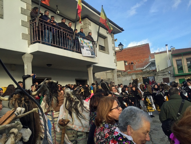 Por la tarde ha tenido lugar la danza de los cucurrumachos, serranas y quintos, en tres corros al son de la gaita y tamboril, terminando con la muerte simbólica de la vaquilla, mientras se recitaron coplas desde el balcón del Ayuntamiento.