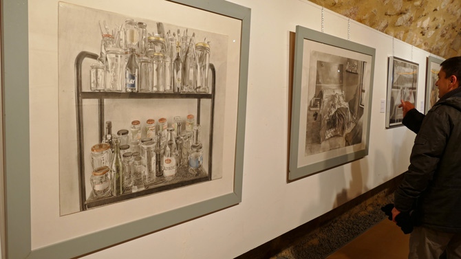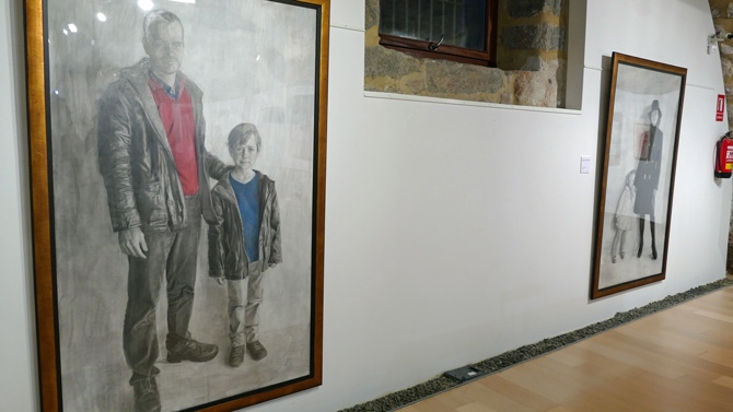 "Hay escenas íntimas de mi entorno, de mi casa y mi estudio, y mi familia", que cuelgan junto a cuatro de los últimos cinco -uno de ellos era un grabado- dibujos que de los carteles de Las Edades, entre ellos el último, de la muestra que se celebrará próximamente en Toro (Zamora) bajo el título de 'Aqua'.